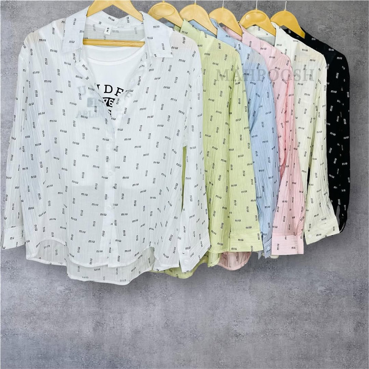 شومیز خنک و لطیف، همراه با تاپ زیر با یه طرح خوشگل Miu Miu که خاص و دلبره از اون کاراییه که نه فقط قشنگه بلکه حس خوبم میده رنگبندی پاستیلی و آروم.